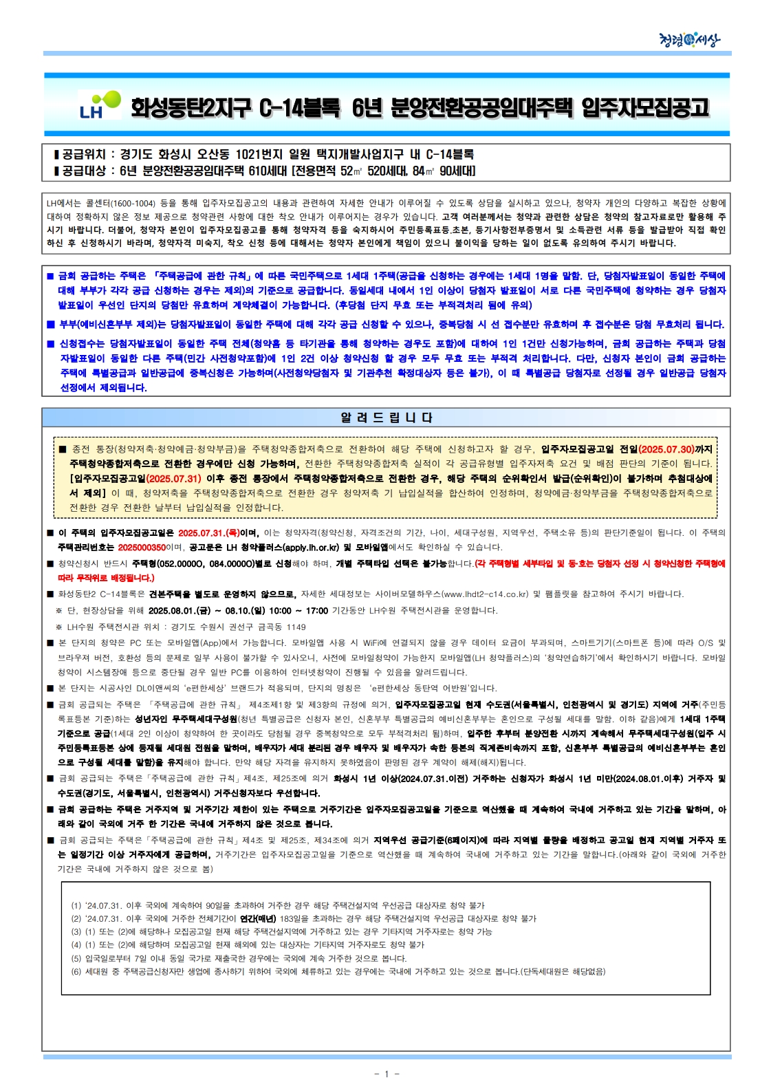 화성동탄2 C-14블록 6년 분양전환공공임대주택 입주자모집공고